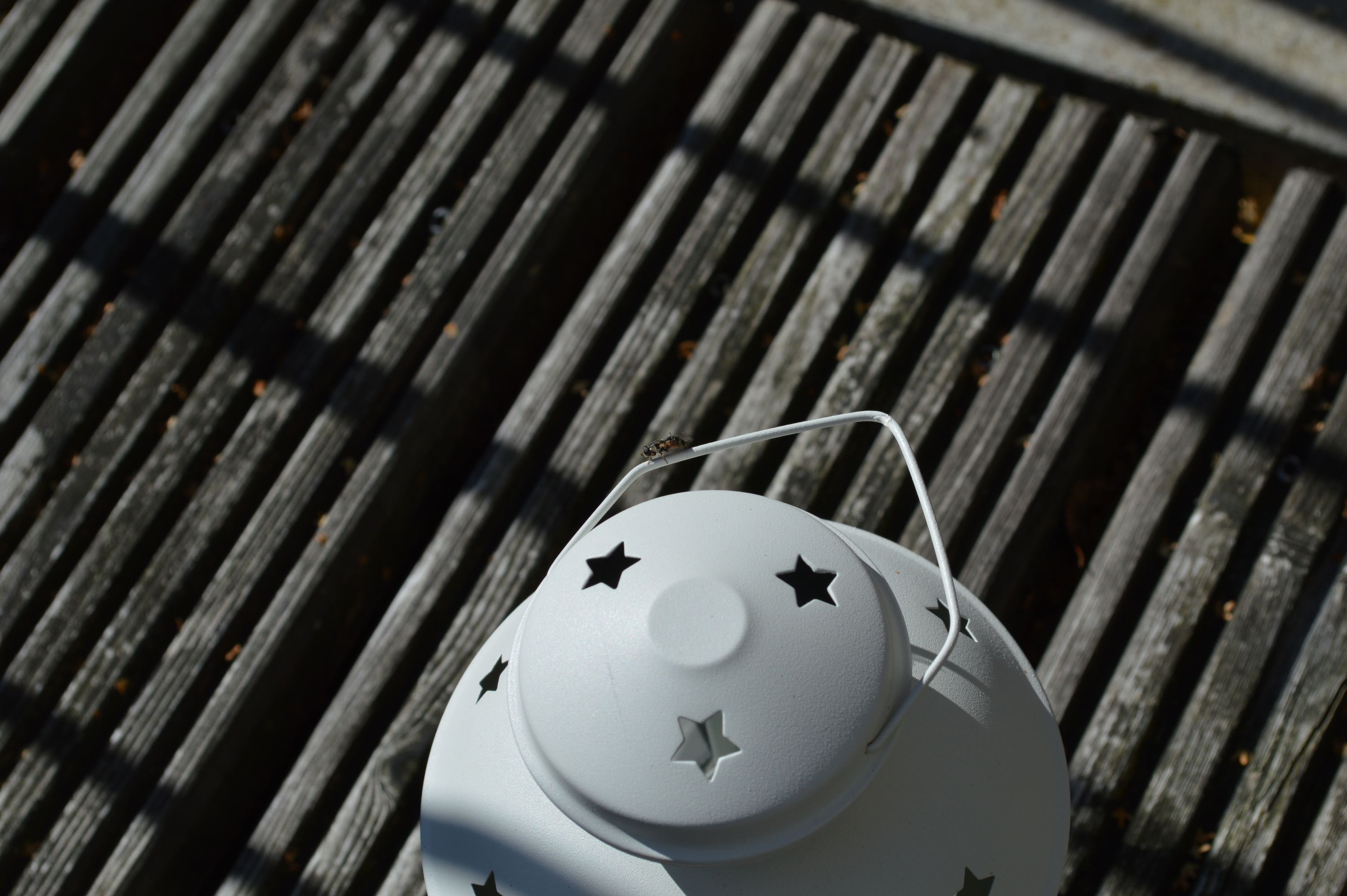 Da hatte sich ein kleiner Besucher bei mir auf dem Balkon einen Platz zum Ausruhen gesucht. Gelandet auf dem Griff einer Lampe.